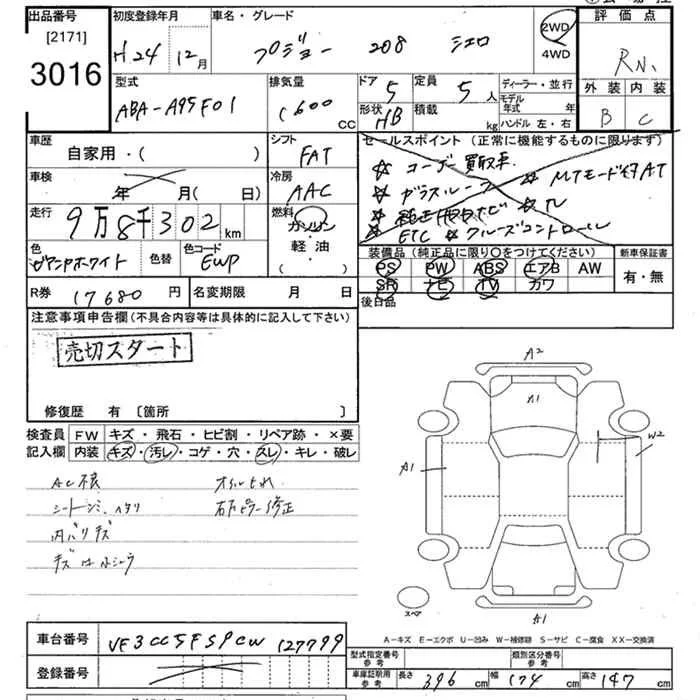 Peugeot 208 с аукциона Японии JU Tokyo лот № 3016