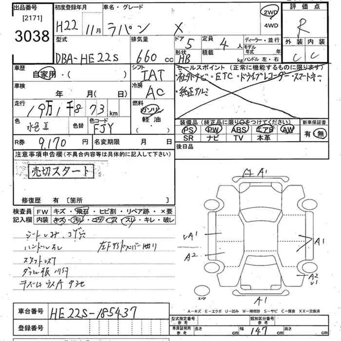 Suzuki ALTO LAPIN с аукциона Японии JU Tokyo лот № 3038