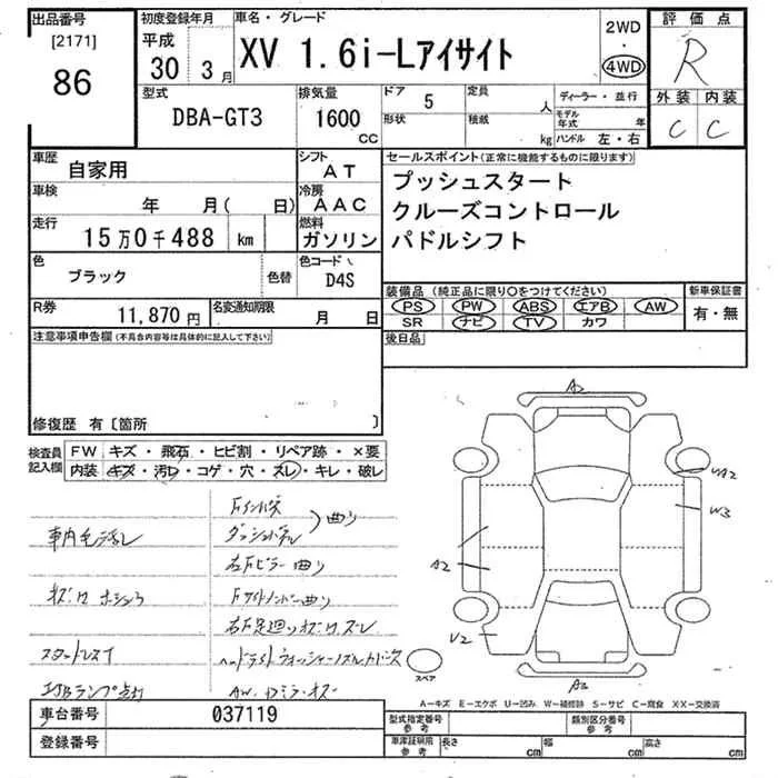 Subaru XV с аукциона Японии JU Tokyo лот № 86