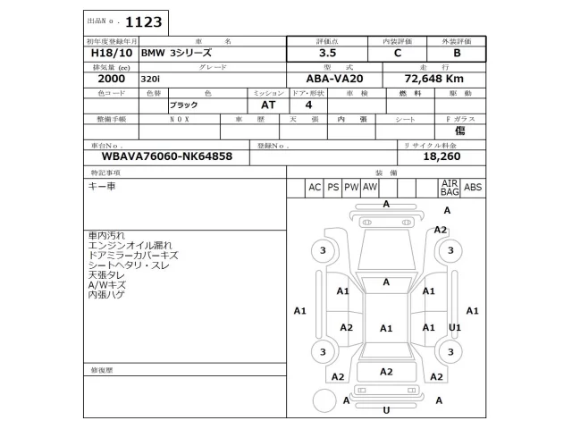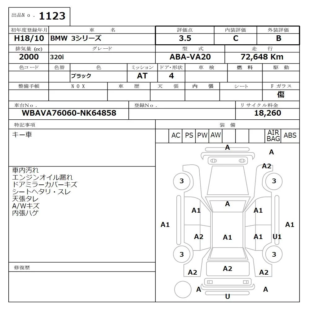 BMW 3-Series с аукциона Японии NISSAN Osaka лот № 1123