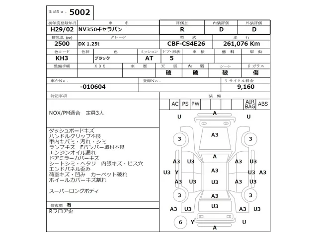 Nissan CARAVAN VAN с аукциона Японии NISSAN Osaka лот № 5002