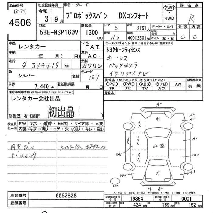 Toyota PROBOX с аукциона Японии JU Tokyo лот № 4506
