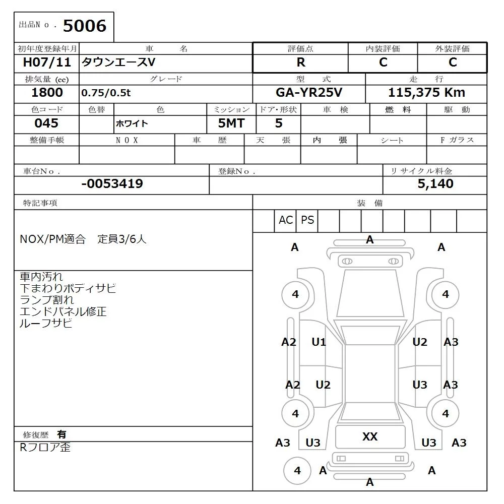 Toyota TOWN ACE VAN с аукциона Японии NISSAN Osaka лот № 5006
