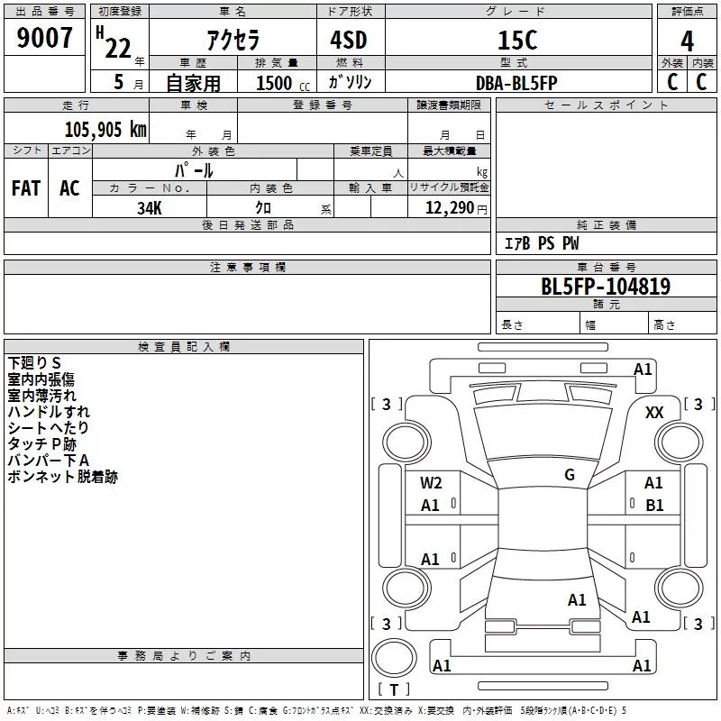 Mazda AXELA с аукциона Японии TAA Shikoku лот № 9007