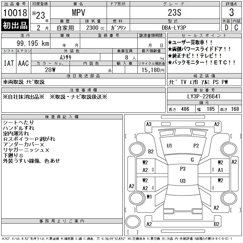 Mazda MPV с аукциона Японии CAA Tokyo лот № 10018