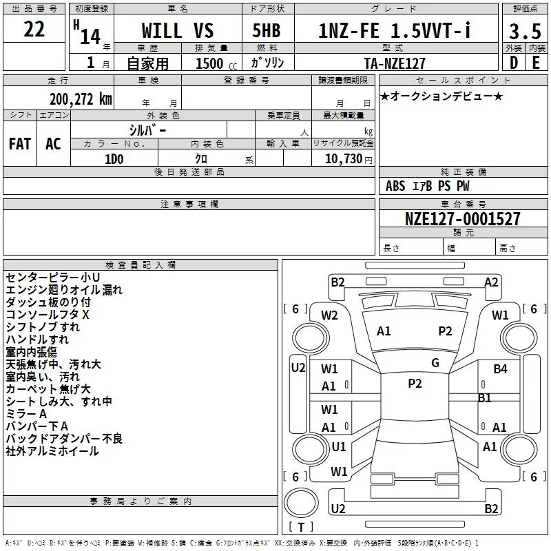 Toyota WILL VS с аукциона Японии TAA Hiroshima лот № 22