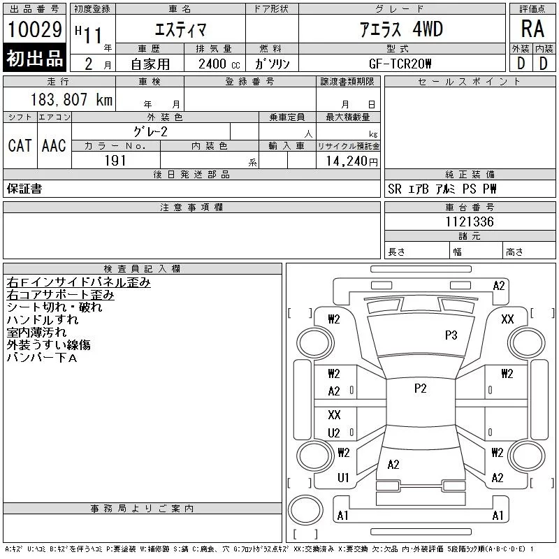 Toyota ESTIMA с аукциона Японии CAA Tokyo лот № 10029