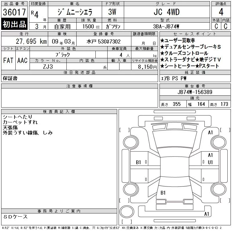 Suzuki JIMNY SIERRA с аукциона Японии CAA Tokyo лот № 36017