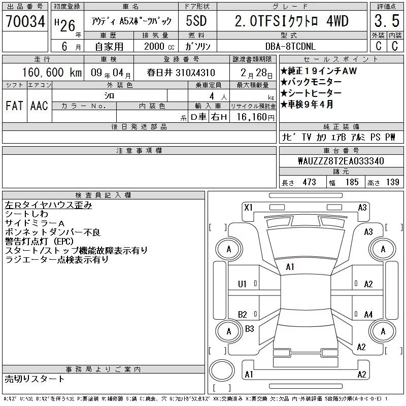 Audi A5 с аукциона Японии CAA Gifu лот № 70034