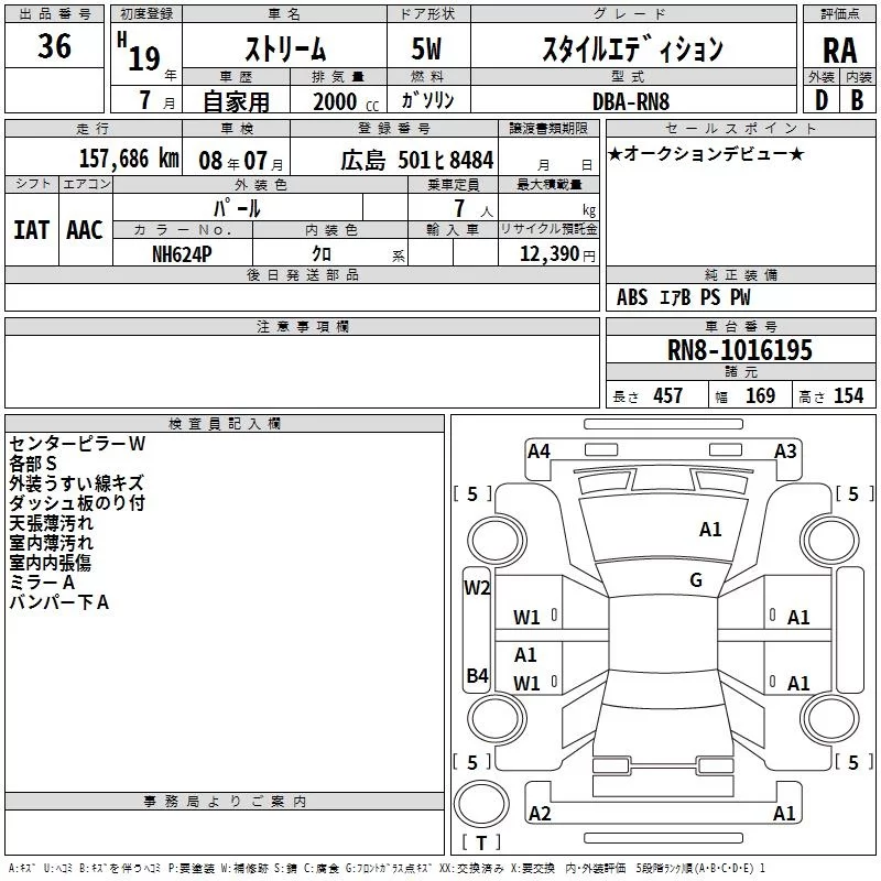 Honda STREAM с аукциона Японии TAA Hiroshima лот № 36