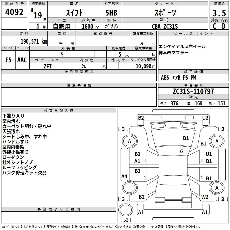 Suzuki SWIFT с аукциона Японии TAA Hiroshima лот № 4092