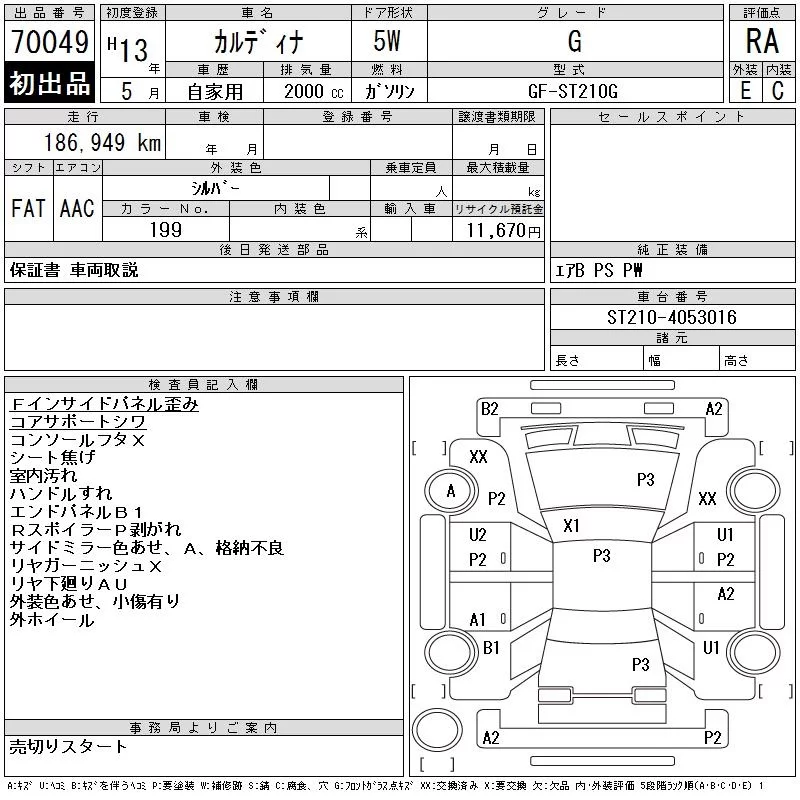 Toyota CALDINA с аукциона Японии CAA Gifu лот № 70049