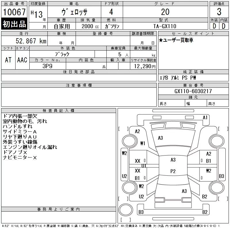 Toyota VEROSSA с аукциона Японии CAA Tokyo лот № 10067