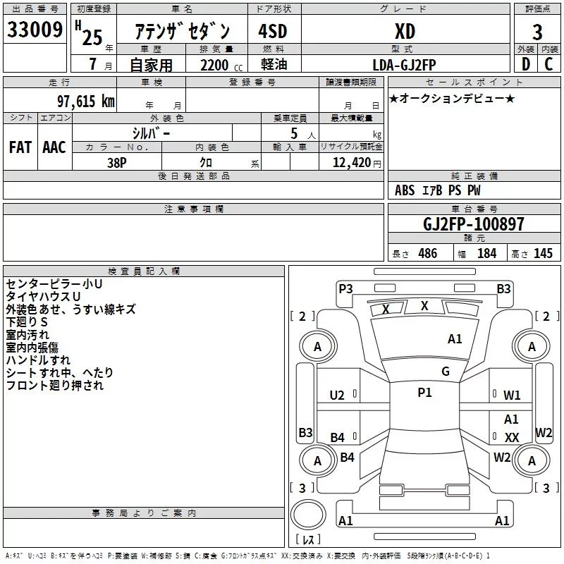 Mazda ATENZA SEDAN с аукциона Японии TAA Kyushu лот № 33009