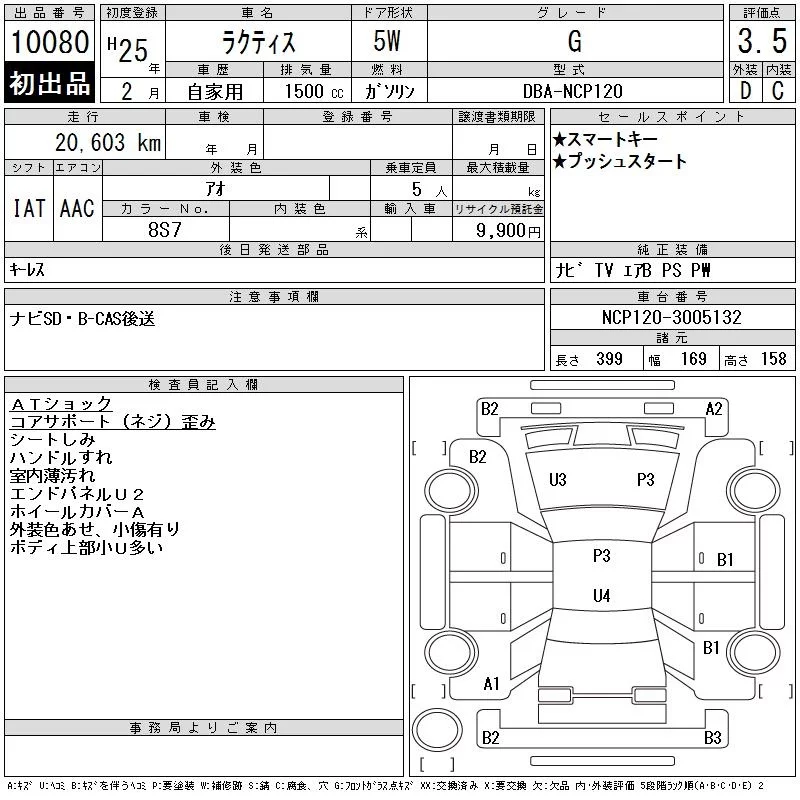 Toyota RACTIS с аукциона Японии CAA Tokyo лот № 10080