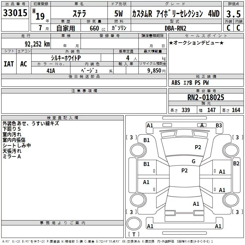 Subaru STELLA с аукциона Японии TAA Kyushu лот № 33015