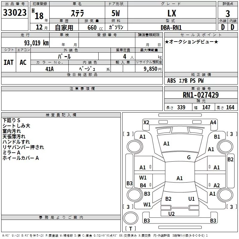 Subaru STELLA с аукциона Японии TAA Kyushu лот № 33023