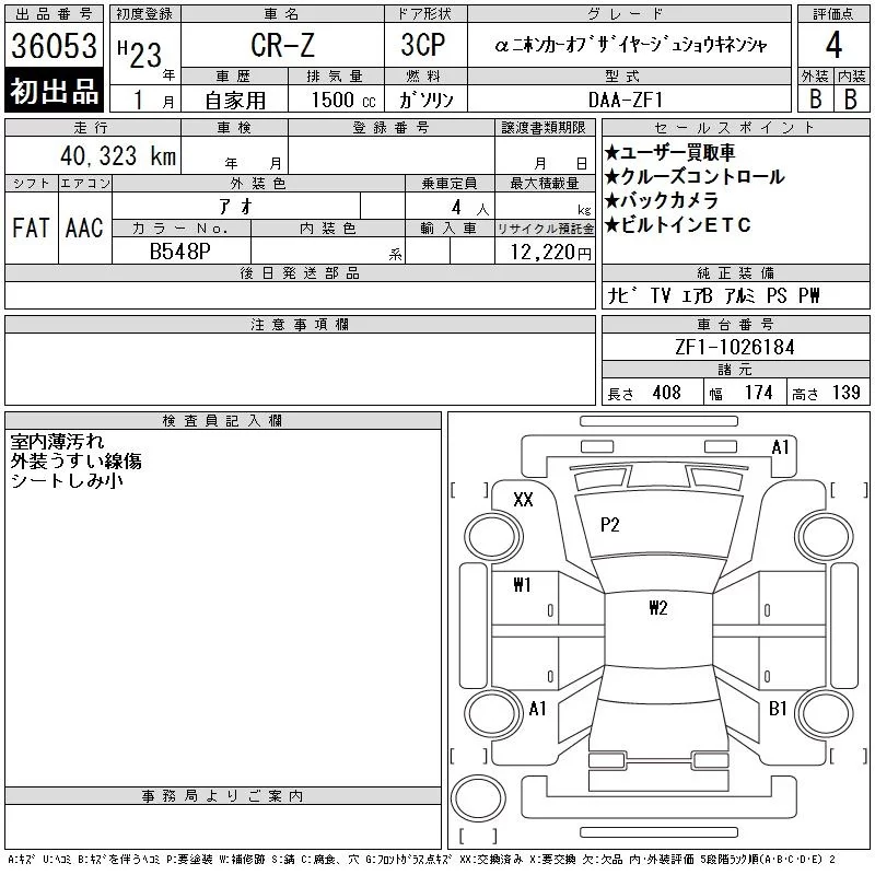 Honda CR-Z с аукциона Японии CAA Tokyo лот № 36053