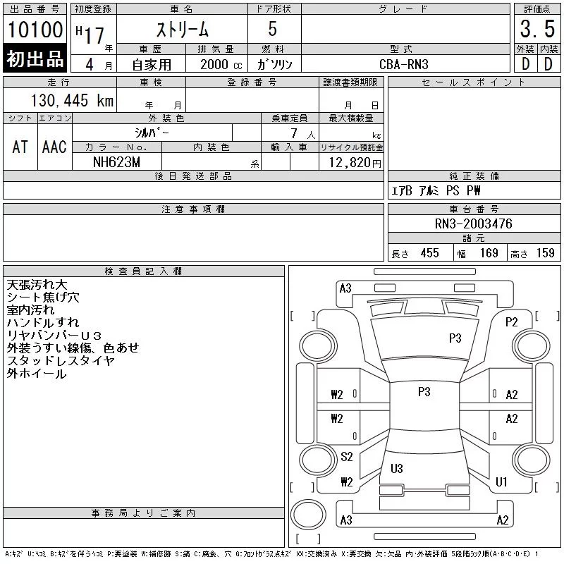 Honda STREAM с аукциона Японии CAA Tokyo лот № 10100