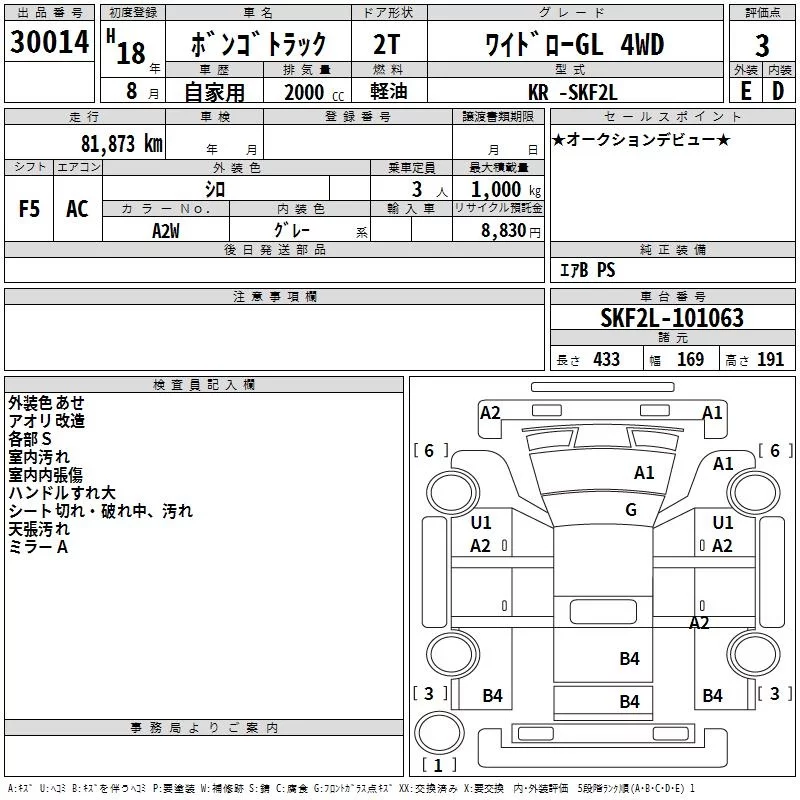 Mazda BONGO с аукциона Японии TAA Kyushu лот № 30014