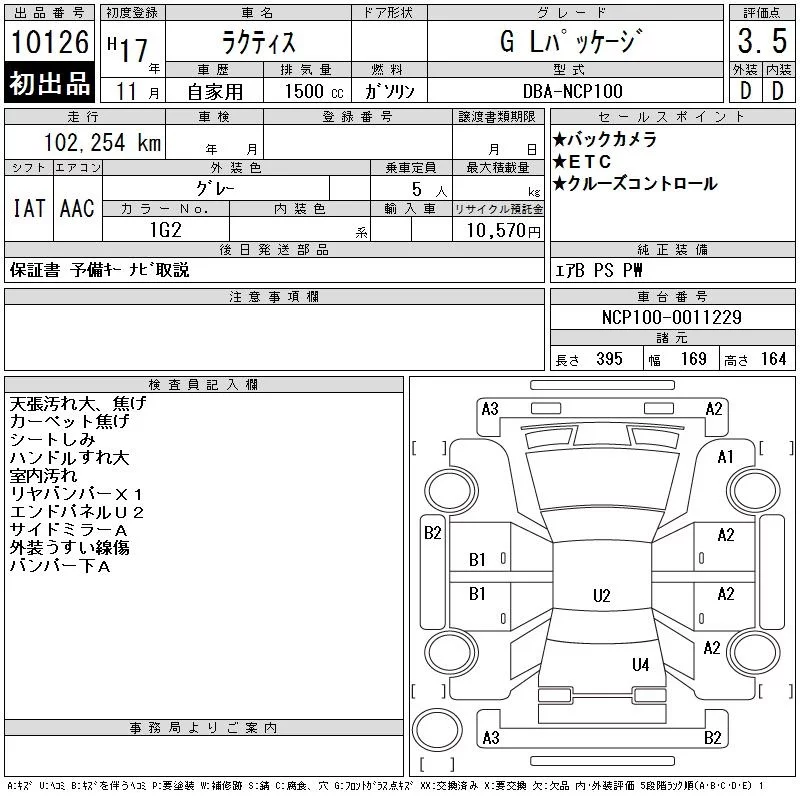 Toyota RACTIS с аукциона Японии CAA Tokyo лот № 10126