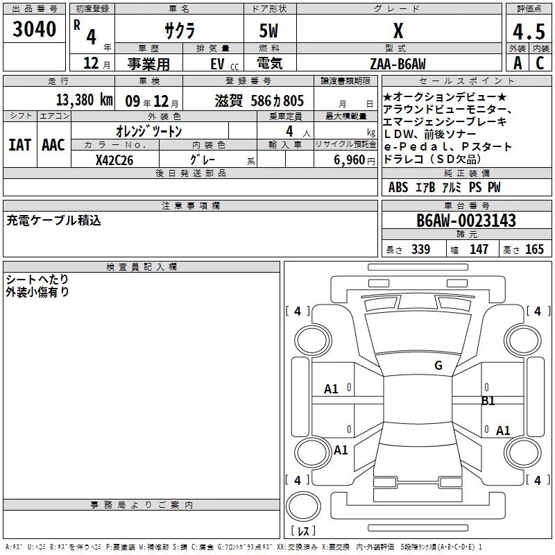 Nissan SAKURA с аукциона Японии TAA Kinki лот № 3040