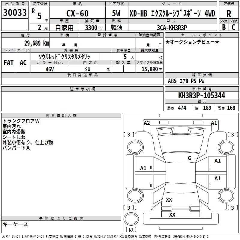 Аукционный лист  CX-60 лот № 30033