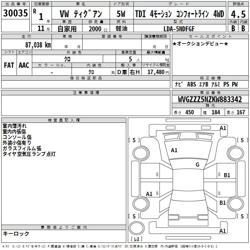 Volkswagen TIGUAN с аукциона Японии TAA Kyushu лот № 30035