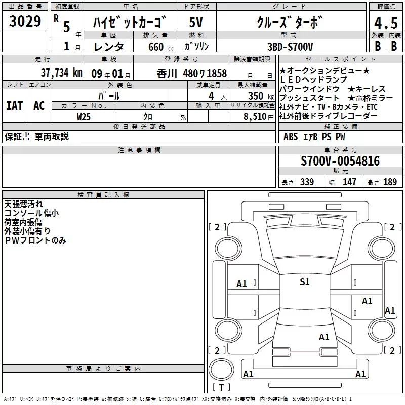 Daihatsu HIJET VAN с аукциона Японии TAA Shikoku лот № 3029