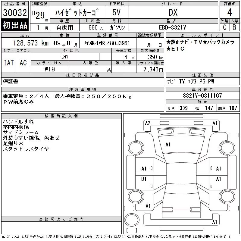 Daihatsu HIJET VAN с аукциона Японии CAA Gifu лот № 30032