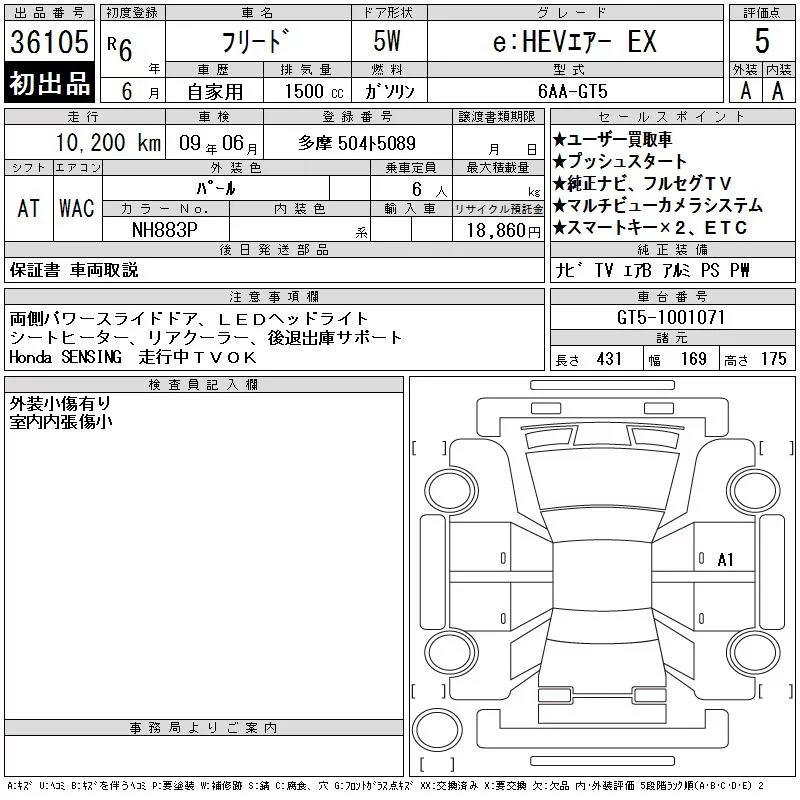 Honda FREED с аукциона Японии CAA Tokyo лот № 36105