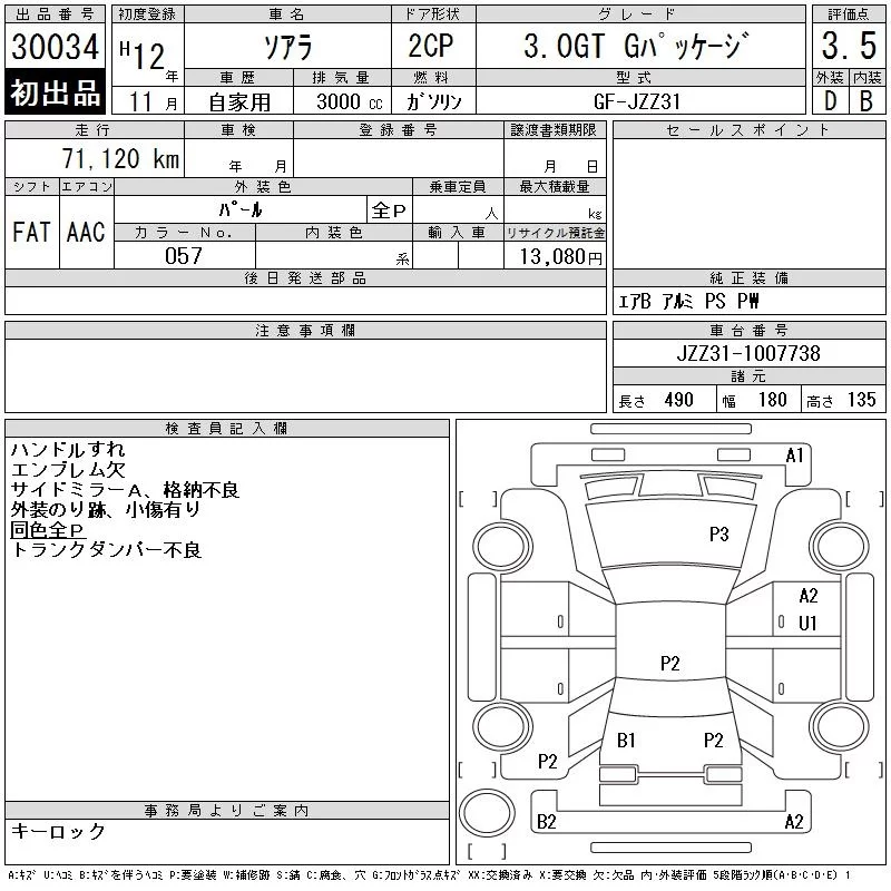 Toyota SOARER с аукциона Японии CAA Gifu лот № 30034
