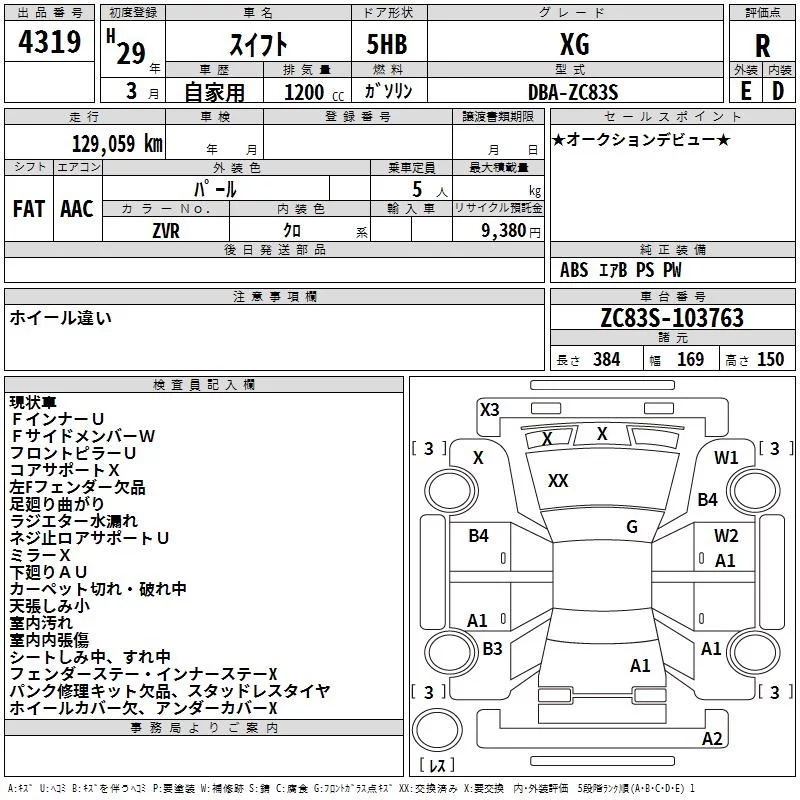Suzuki SWIFT с аукциона Японии TAA Hiroshima лот № 4319