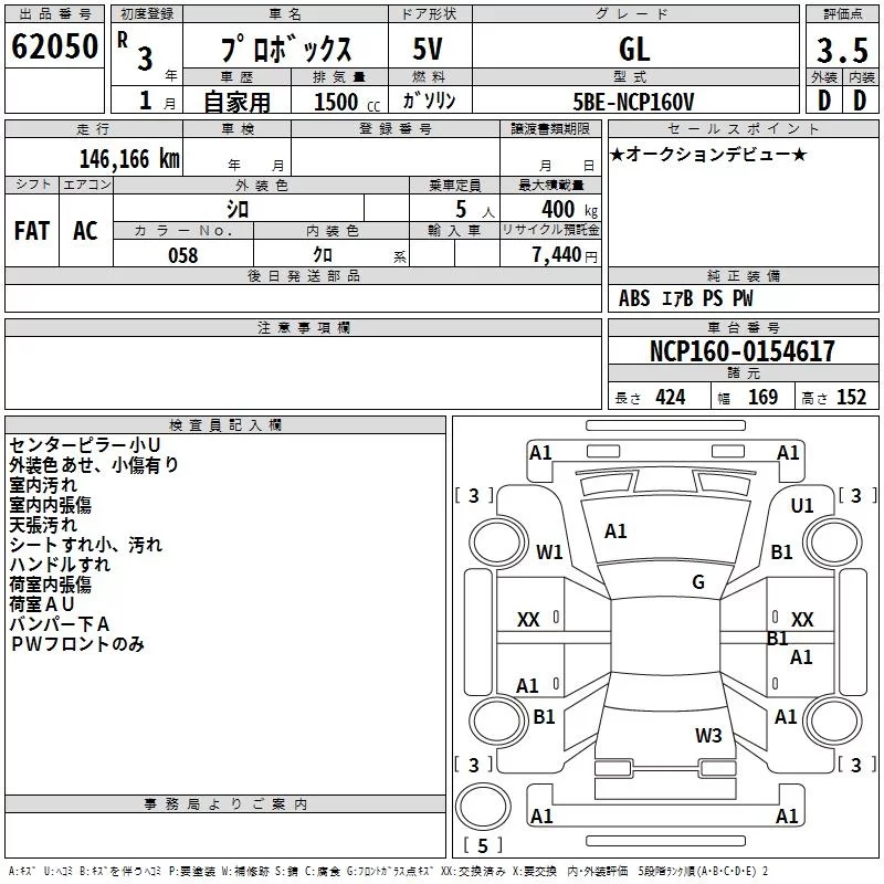 Toyota PROBOX с аукциона Японии TAA Kyushu лот № 62050