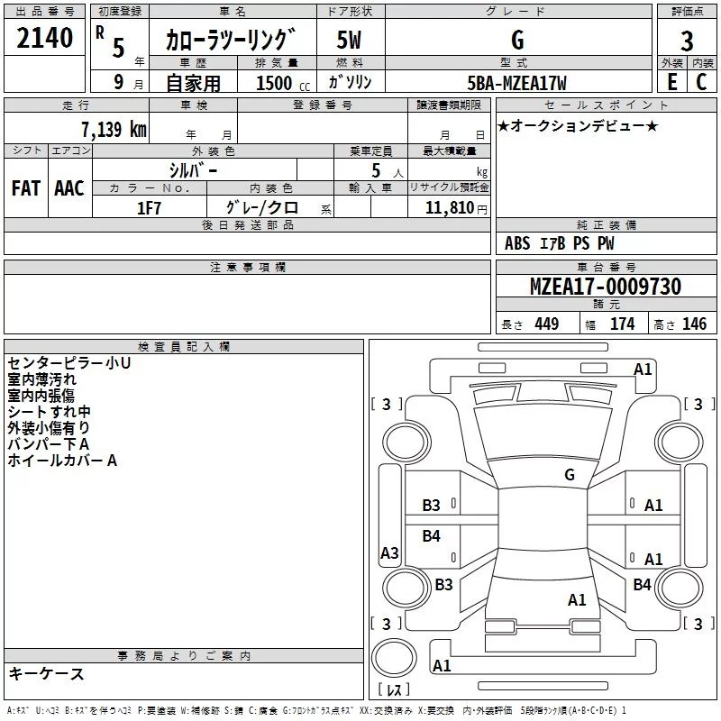 Toyota COROLLA TOURING с аукциона Японии TAA Kyushu лот № 2140