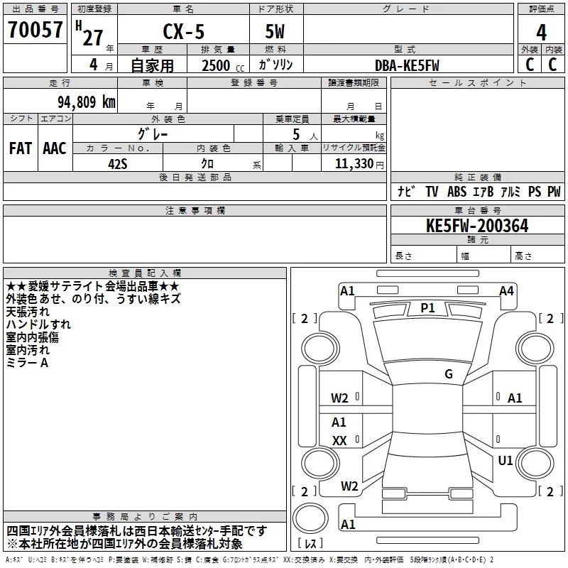 Mazda CX-5 с аукциона Японии TAA Shikoku лот № 70057