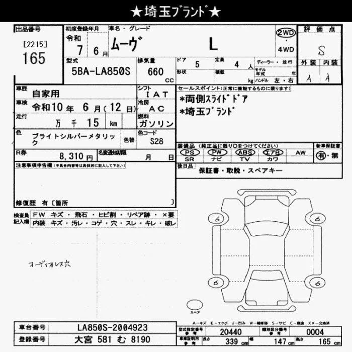 Daihatsu MOVE с аукциона Японии JU Saitama лот № 165