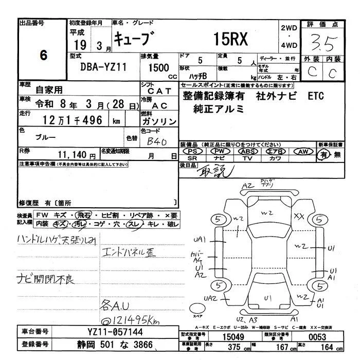 Nissan CUBE с аукциона Японии JU Shizuoka лот № 6