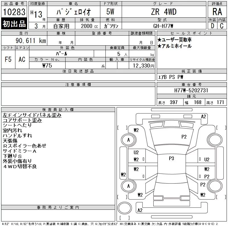 Mitsubishi PAJERO IO с аукциона Японии CAA Tokyo лот № 10283