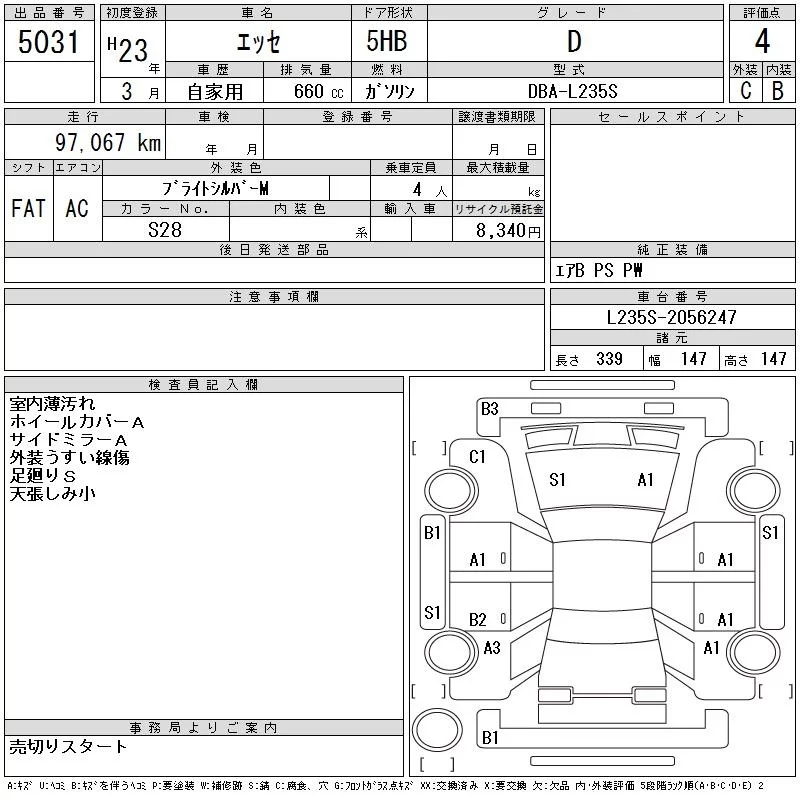 Daihatsu Esse с аукциона Японии CAA Tohoku лот № 5031