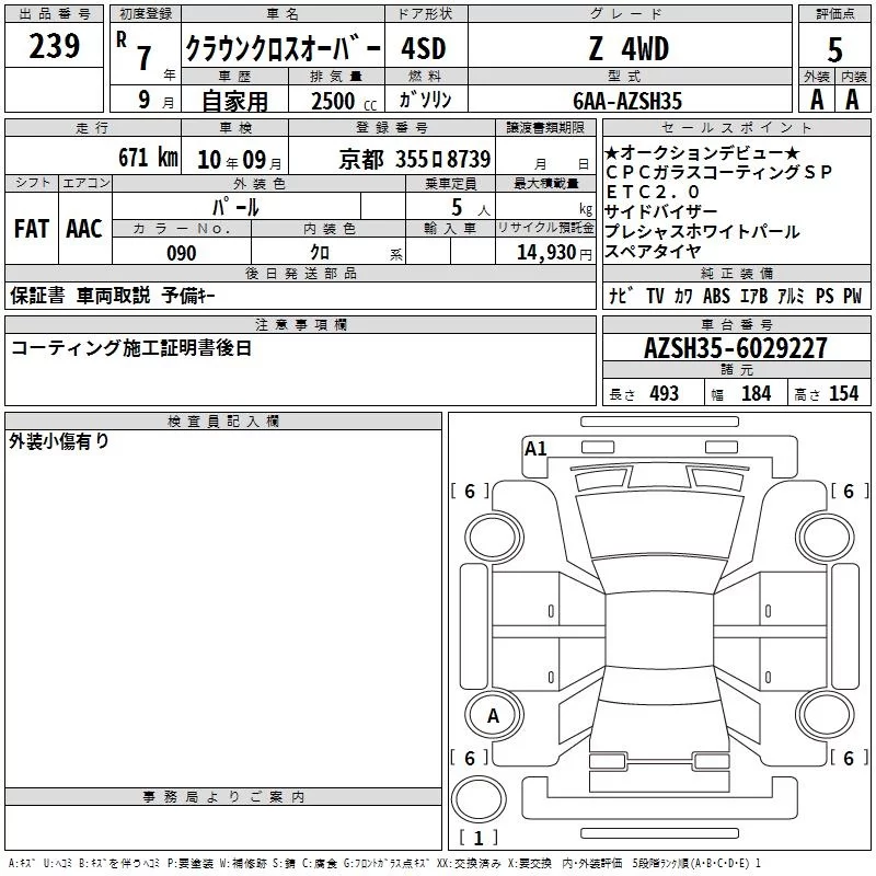 Toyota CROWN CROSSOVER с аукциона Японии TAA Kinki лот № 239