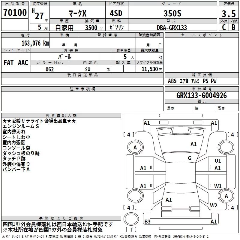 Toyota MARK X с аукциона Японии TAA Shikoku лот № 70100