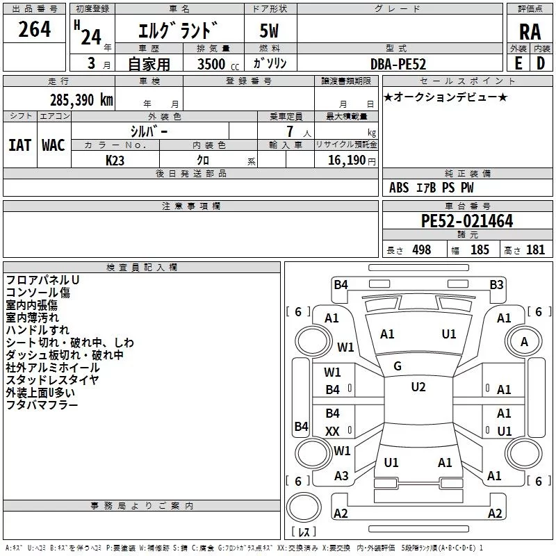 Nissan ELGRAND с аукциона Японии TAA Hiroshima лот № 264