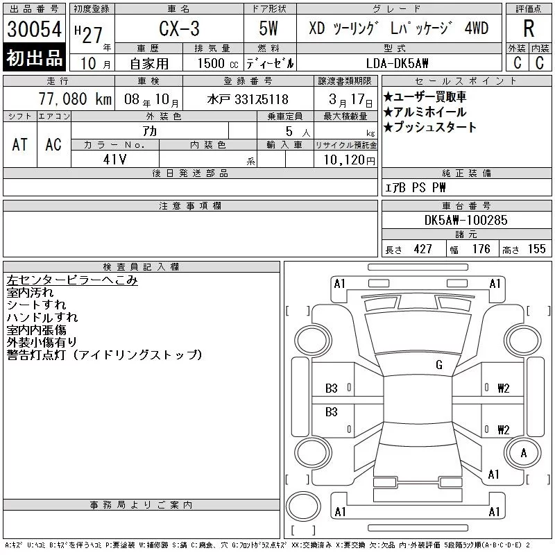 Mazda CX-3 с аукциона Японии CAA Tokyo лот № 30054