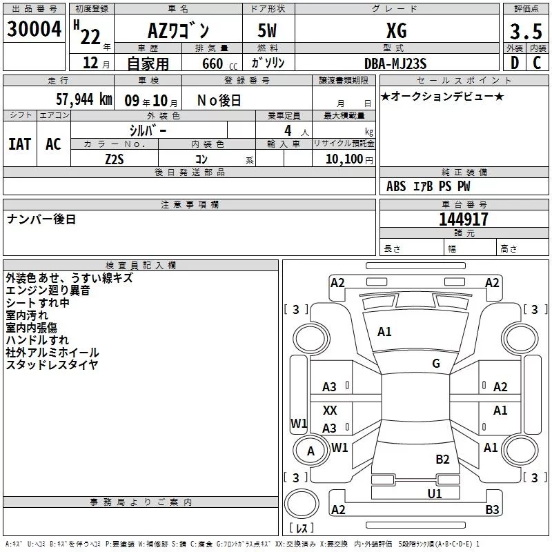 Mazda AZ WAGON с аукциона Японии TAA Hiroshima лот № 30004