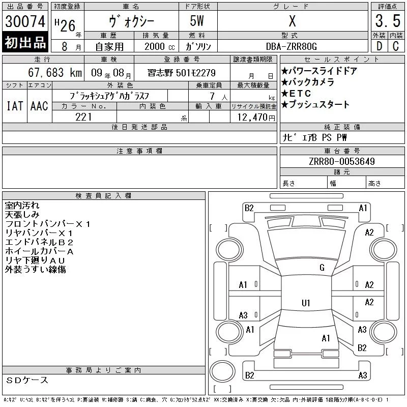 Toyota VOXY с аукциона Японии CAA Tokyo лот № 30074