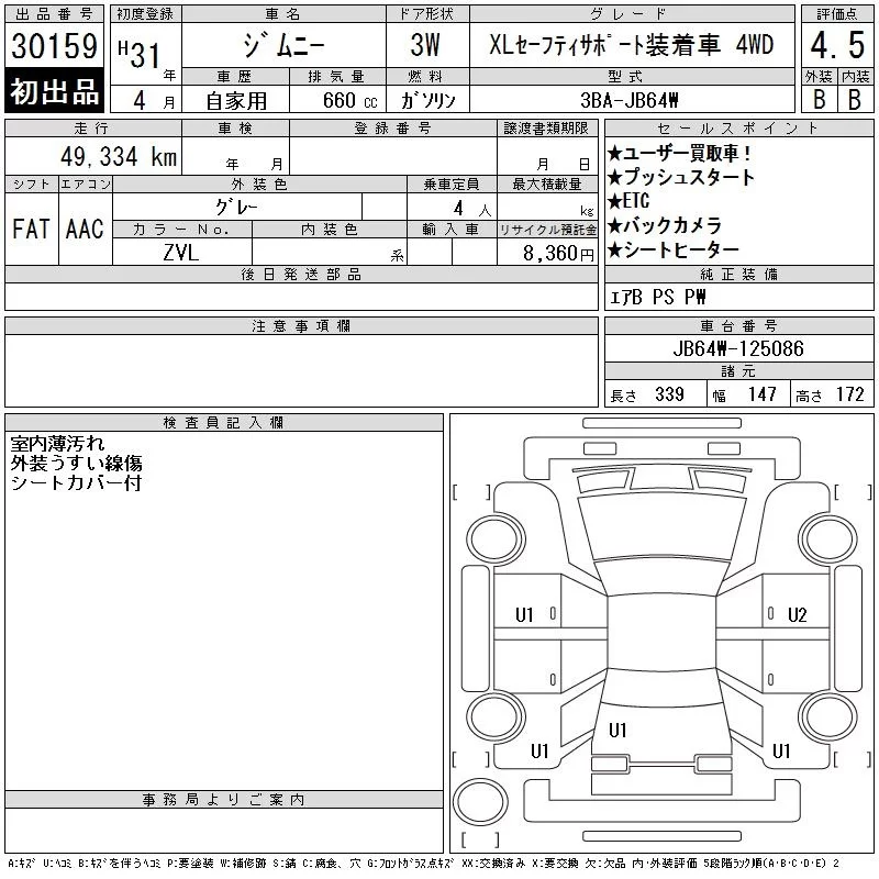 Suzuki JIMNY с аукциона Японии CAA Gifu лот № 30159