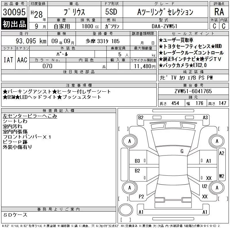 Toyota Prius с аукциона Японии CAA Tokyo лот № 30095