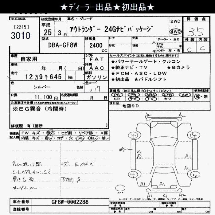 Mitsubishi OUTLANDER с аукциона Японии JU Saitama лот № 3010