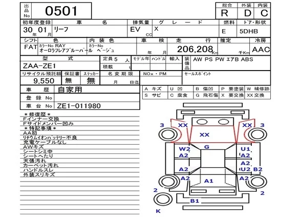 Nissan LEAF с аукциона Японии NAA Fukuoka лот № 501